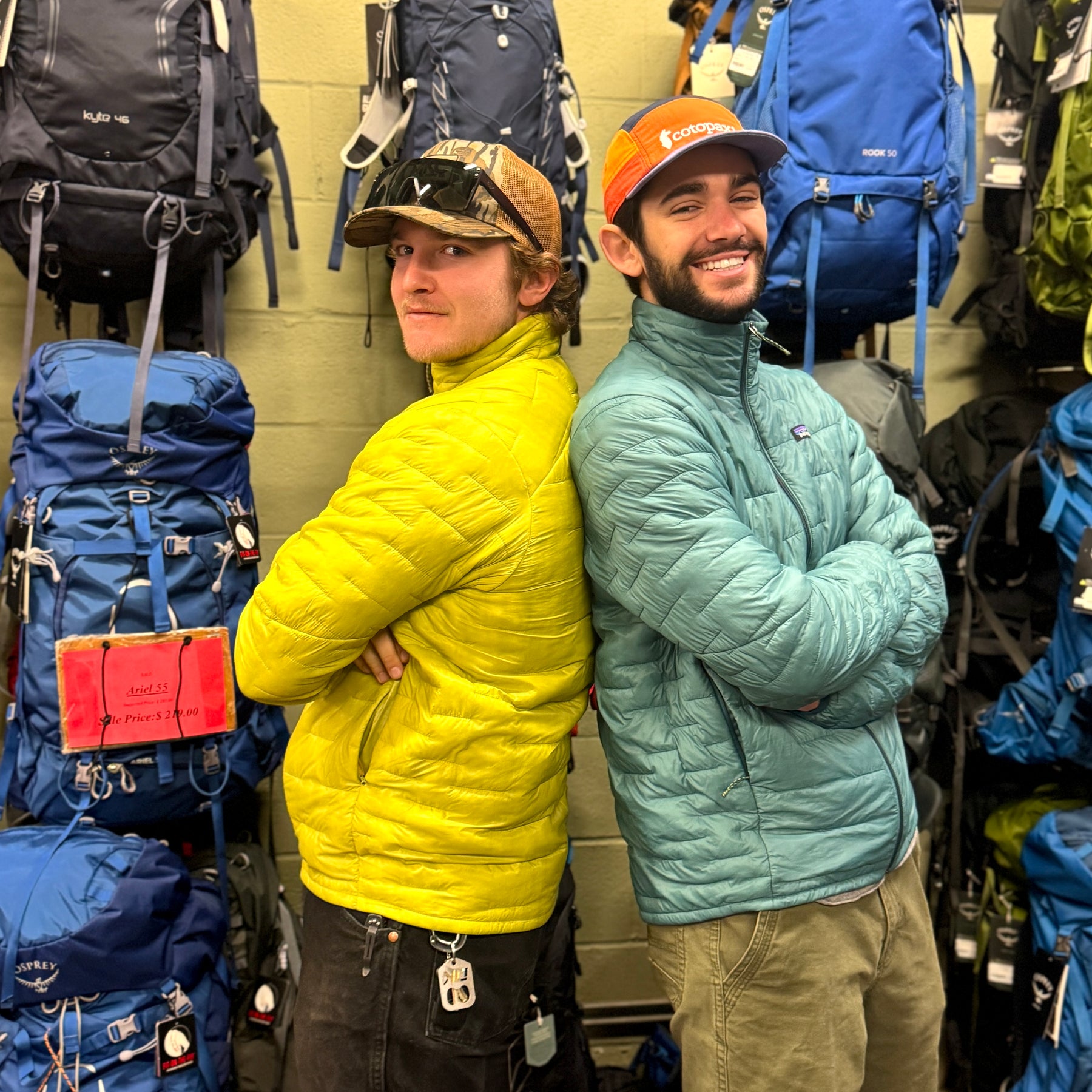 Two welted, zippered handwarmer pockets and two internal drop-in pockets; left pocket doubles as a stuffsack with a reinforced carabiner clip-in loop